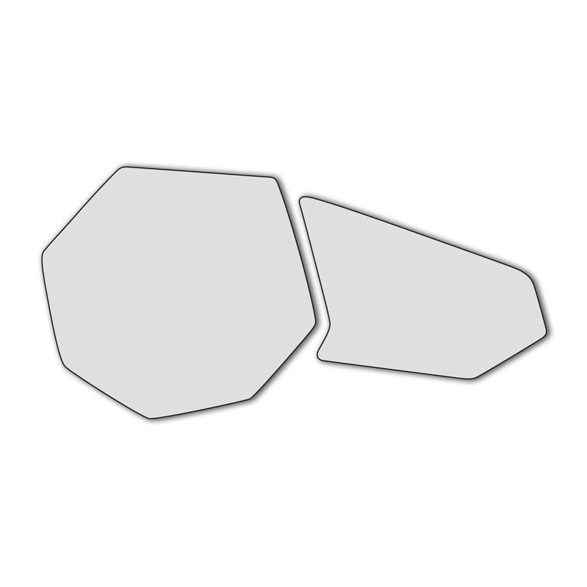 Pierwsze zdjęcie na białym tle przedstawia kształt dedykowanej do opisanych tutaj modeli motocykli folii ochronnej.