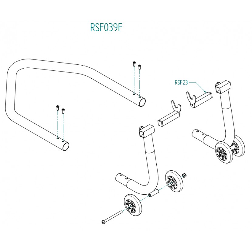 Ten model stojaka jest modułowy, należy go zamontować na tylnej części motocykla. Wykonany jest ze stali i wyposażony w 4 koła oraz 2 widelce. Waga podnośnika to 3,6 kg. Podnośnik wysyłany jest w oryginalnym pudełku o wymiarach 47 x 56 x 7 cm.