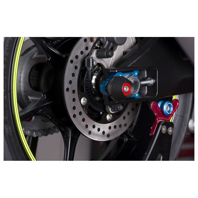 Zintegrowane ślizgacze zapewniają ochronę tylnej osi, mogą również być stosowane jako adaptery do zamocowania rolek wahacza. Są montowane są na takiej samej zasadzie, jak oryginalne, dlatego można je zamocować bez wprowadzania jakichkolwiek modyfikacji w konstrukcji motocykla . Po zamontowaniu ułatwiają szybsze i bardziej dokładne ustawienie koła. Zastosowane materiały (utwardzany stop aluminium), poddane precyzyjnej obróbce w technologii CNC, gwarantują maksymalną wytrzymałość. ślizgacze tylnej osi to nie tylko trwałość, ale także unikalny design.